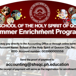 Filters Categories Show all News Announcement More Options News June 17, 2024May 12, 2024 Bronze Medalistby Holy Spirit BFHOMES News June 17, 2024May 25-26, 2024 SHSQC Taekwondo Medalistsby Holy Spirit BFHOMES Announcement June 17, 2024May 4, 2024 CHAMPION (Age 7-8 Category) at the INTERNATIONAL TRIATHLON in Subicby Holy Spirit BFHOMES Announcement June 17, 2024Guitar Lessonby Holy Spirit BFHOMES News June 17, 20242024 Moving Up Ceremony of Kindergarten Classby Holy Spirit BFHOMES News June 17, 2024SY 23-24 Graduation Ritesby Holy Spirit BFHOMES Announcement June 17, 2024SY 24-25 Enrollment Process for New Studentsby Holy Spirit BFHOMES Announcement June 17, 2024Summer Training PEPby Holy Spirit BFHOMES Announcement June 17, 2024Summer Offeringsby Holy Spirit BFHOMES News February 27, 2022Congratulations to our Grade 12 Students and to their Coachby Holy Spirit BFHOMES News February 25, 2022Congratulations Ms. Jowie Advinculaby Holy Spirit BFHOMES News February 6, 2022Congratulations to our Grade 11 Students and to their Coachby Holy Spirit BFHOMES NewsAnnouncement February 2, 2022Admission for all levels of the School of the Holy Spirit of Quezon City (SY 2022-2023) is ongoingby Holy Spirit BFHOMES News February 23, 2020Congratulations to our Senior High School Students and to their Coachby Holy Spirit BFHOMES