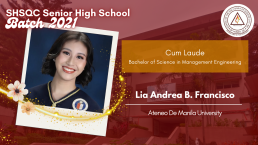 The SHSQC Alumni Association is a dedicated community of graduates from the School of the Holy Spirit of Quezon City (SHSQC) who actively support their alma mater. Through various initiatives, the association fosters strong ties between alumni and the school, contributing to the growth and development of SHSQC. The association plays a vital role in fundraising, organizing events, and providing mentorship and networking opportunities for current students, helping to uphold the school’s values and traditions. Their efforts ensure that SHSQC continues to thrive and provide quality education to future generations.
